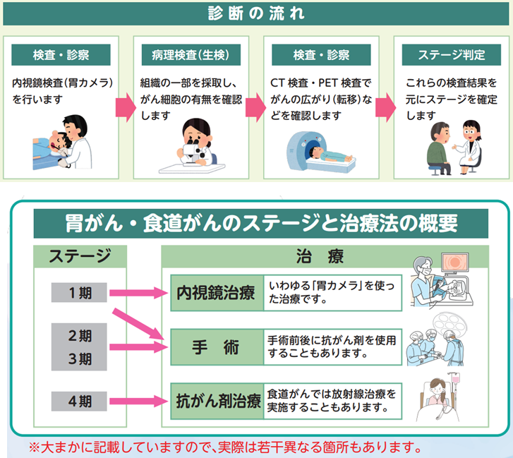 胃がんの診断方法や治療法については、以下で解説しておりますので、ぜひご覧ください。