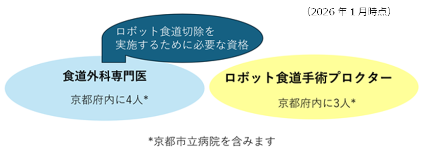 当院は京都府内でロボット⽀援での食道がん⼿術を実施している医療機関の⼀つです。さらに、1か所の⼩さな切開からカメラと器具を挿⼊する「ダヴィンチSP」を導⼊しているのは、京都府内で当院のみです。(2025年12⽉時点)