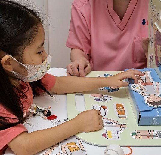 こどもの年齢・発達に合わせ、遊びを用いながら手術や処置、治療の過程の説明をし、こころの準備(プレパレーション)を行います。