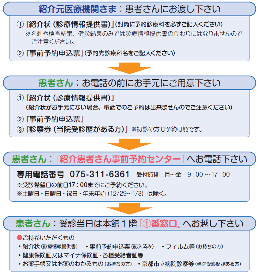 紹介状をお持ちの患者さんは、ご自身で予約を取ることができます。事前予約により患者さんのご都合に合わせた、待ち時間の少ない受診が可能になります。