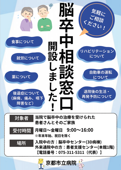脳卒中の患者さん、そのご家族の方で何かお困りのことがあれば、「脳卒中相談窓口」をご利用ください。